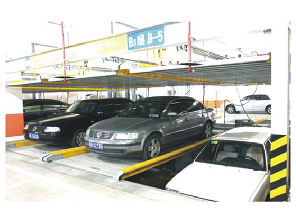 带基坑三层升降横移 运行原理 该设备的顶层载车板可上下升降;基坑层载车板可上下升降;地面层载车板做横移,地面层留有一个空位,可以通过横移载车板变换空位,使空位正上或下方的载车板下降或上升到地面层。地